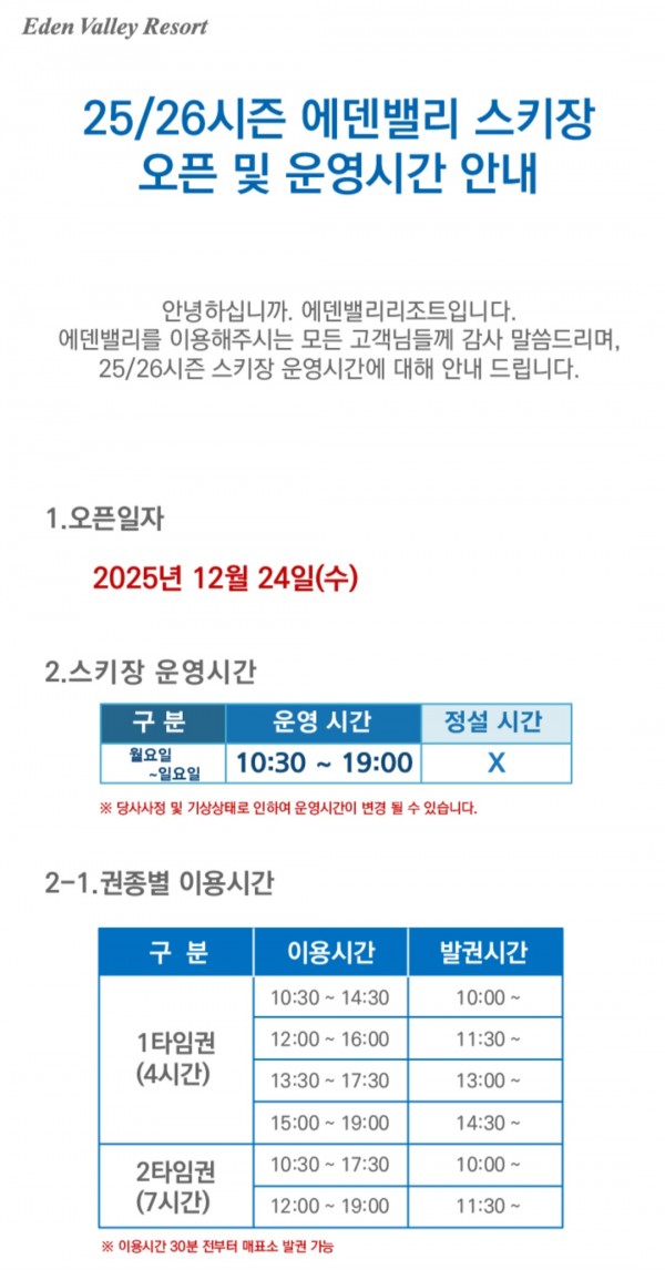 25/26 오픈일자 12월24일 정상오픈합니다 페이지 정보 작성자 브이스키 댓글 0건 조회 113회 작성일 25-12-24 08:58 목록 답변 본문 감사합니다 이전글25/26 헬맷의무화 안내 25.12.24 다음글24/25 스키장 오픈일 확정 24.12.05 댓글 0 댓글목록 등록된 댓글이 없습니다.
